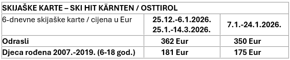 SKI HIT KÄRNTEN / OSTTIROL 2026 (vrijedi za skijaške centre Sillian, Grossglockner resort (Matrei-Kals), St Jakob, Mölltaler Gletscher i Ankogel Bergbahnen Mallnitz)