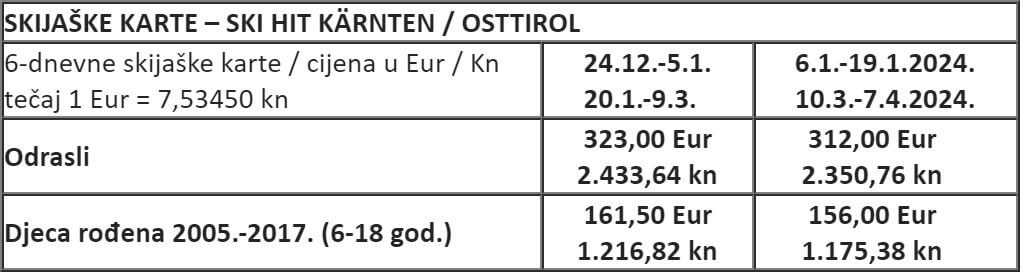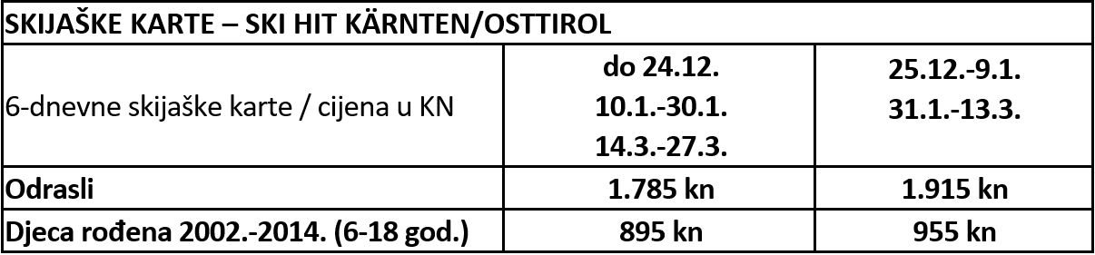 SKI HIT KÄRNTEN / OSTTIROL 2023/2024 (vrijedi za skijaške centre Sillian, Grossglockner resort (Matrei-Kals), St Jakob, Mölltaler Gletscher i Ankogel Bergbahnen Mallnitz)